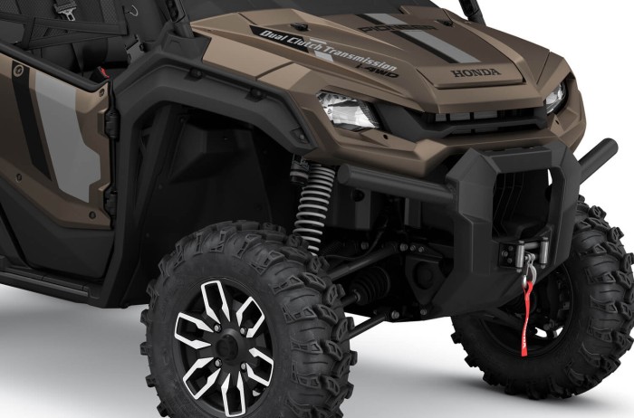 A powerful 999cc twin engine, especially in the mid and top range, combined with lower gear ratios to deliver strong acceleration, versatility and performance. The towing capacity is a massive 1,134kg (with 454kg hauling) and there's added ground clearance and larger tyres. Fully-independent front and rear suspension with some of the longest travel of any multi-purpose side-by-side. And open or locked front and rear differentials that prevent you from unnecessarily tearing up delicate surfaces. And let’s remember: this is a Honda, a name that’s long stood for quality and reliability. So you get class-leading power, performance, and features, purpose-built by the best in the business.