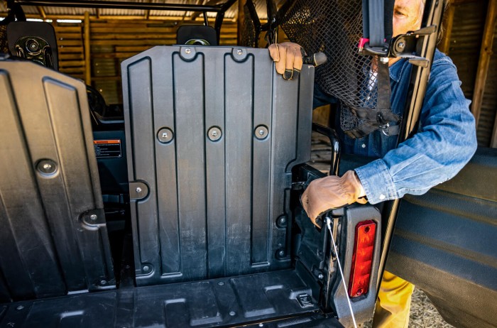 Versatility is the defining feature of the Pioneer 1000-5P, and nothing illustrates that better than our industry-exclusive QuickFlip® seating system. Switch between 3-person mode with full cargo and tilt bed functionality, to 4-person mode, to 5. Seats lay flat in the bed, and pop up in an instant whenever you need them.
